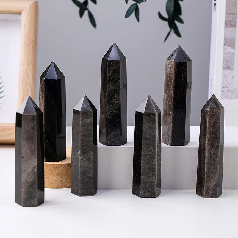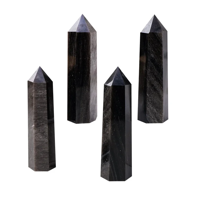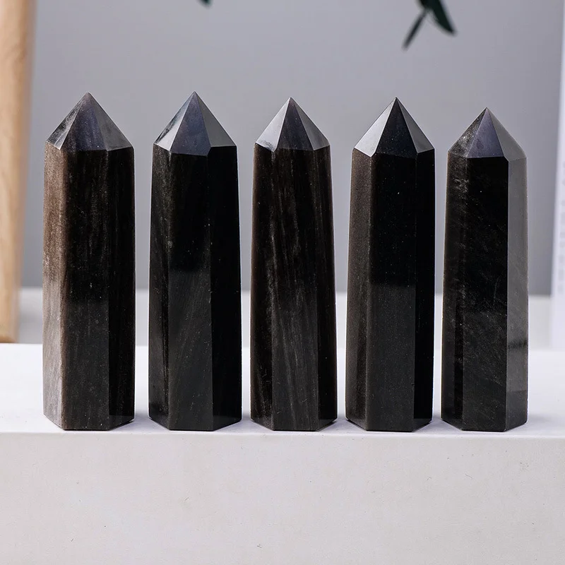 5 Sizes of Black Gold Obsidian Crystal Tower / Pillar Wholesale