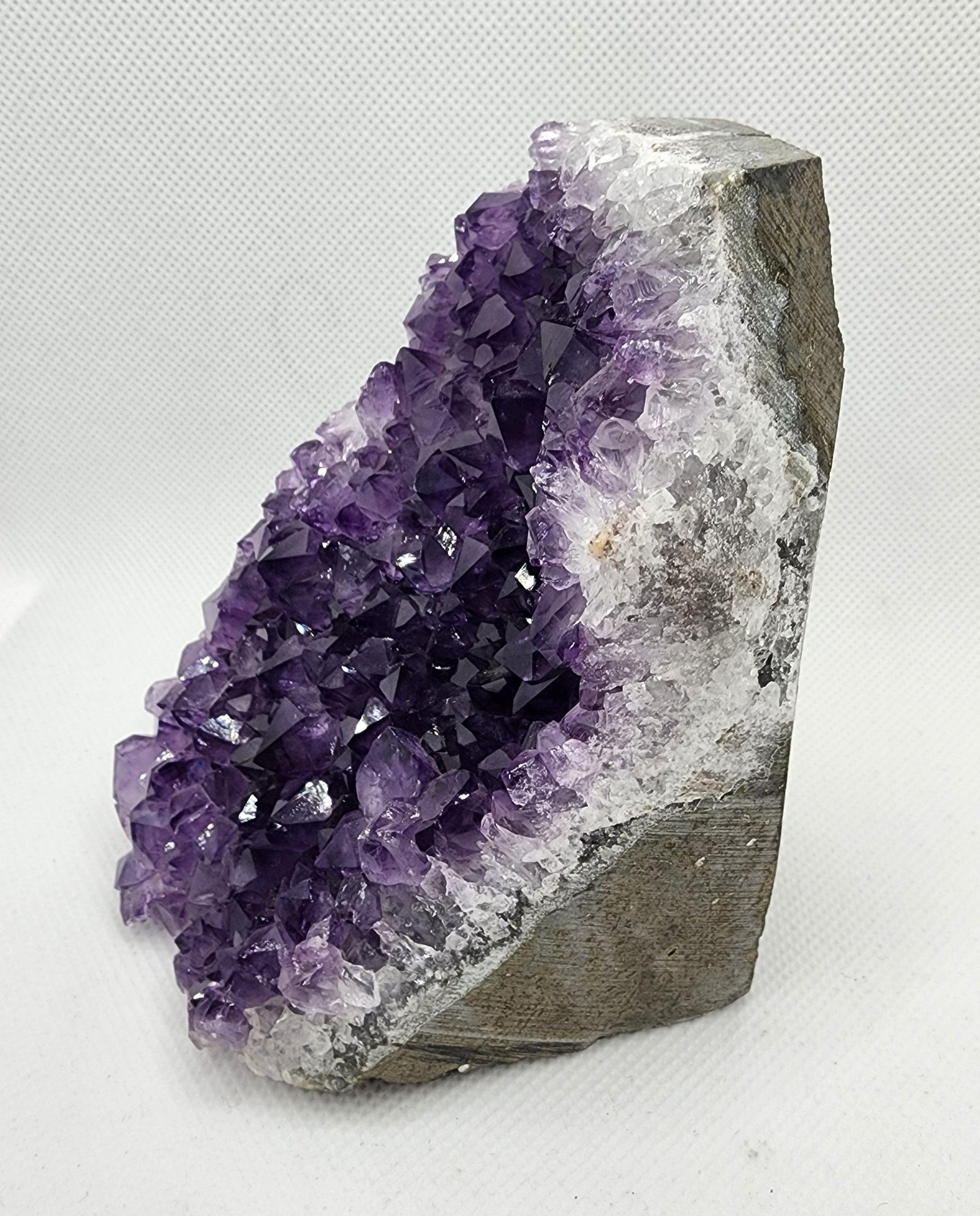 Originating from the rich mineral deposits of Uruguay, each crystal within this cluster reflects the unique geological history of its surroundings. The deep purple hues of the amethyst evoke a sense of luxury and elegance, while their sparkling clarity adds a touch of magic to the piece.