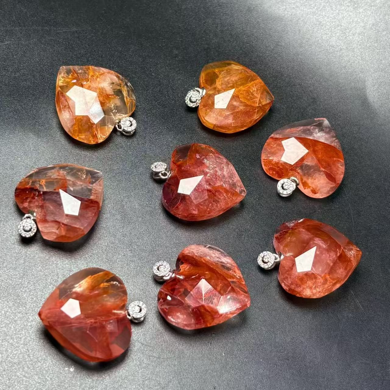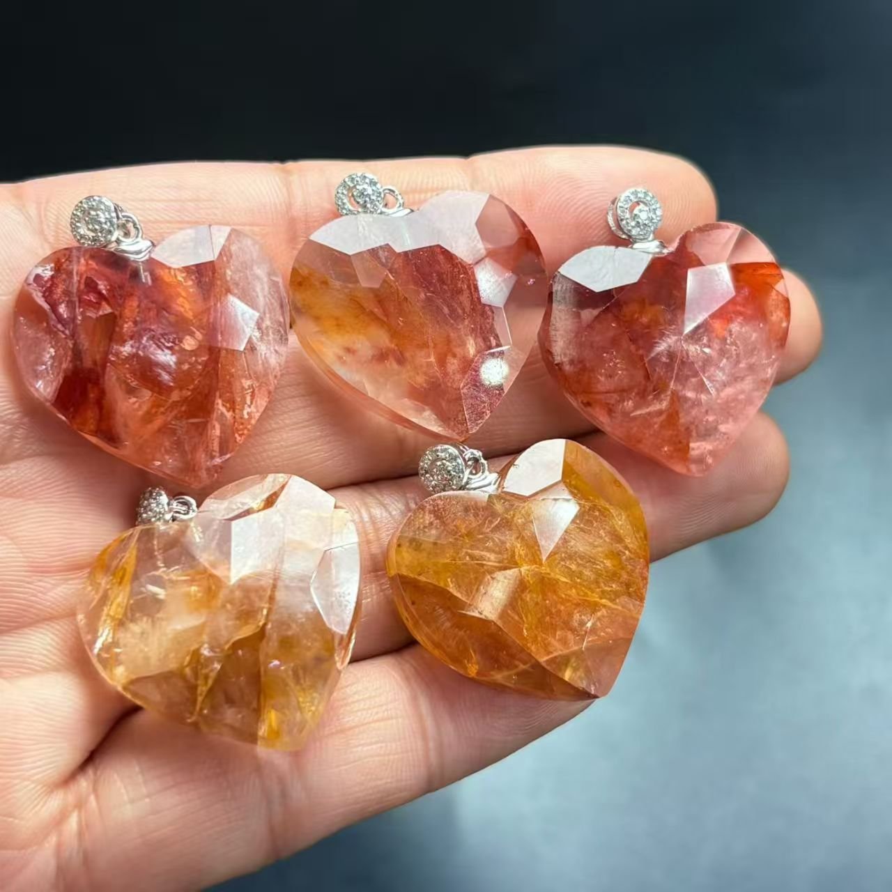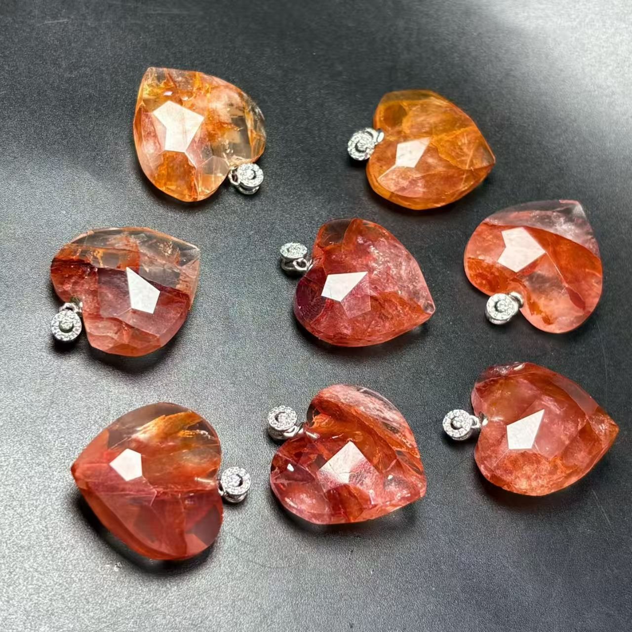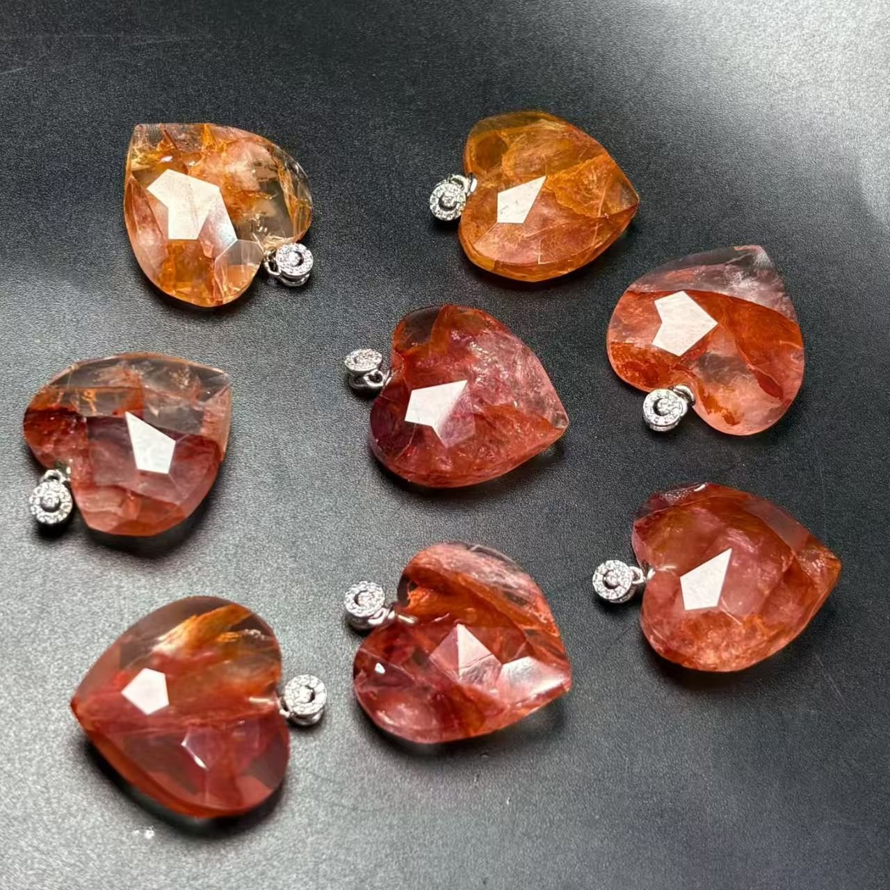 Natural tea crystal heart pendant, s925 silver inlay. Specifications: Natural red gum flower heart pendant, s925 silver inlay, approximately 23mm. Upon purchase, a beautiful gift box will be sent, along with exquisite hand-woven string. The packaging is perfect and comes with a certificate of authenticity. The main feature is pure natural crystal. (Requires a silver chain plus $30)
