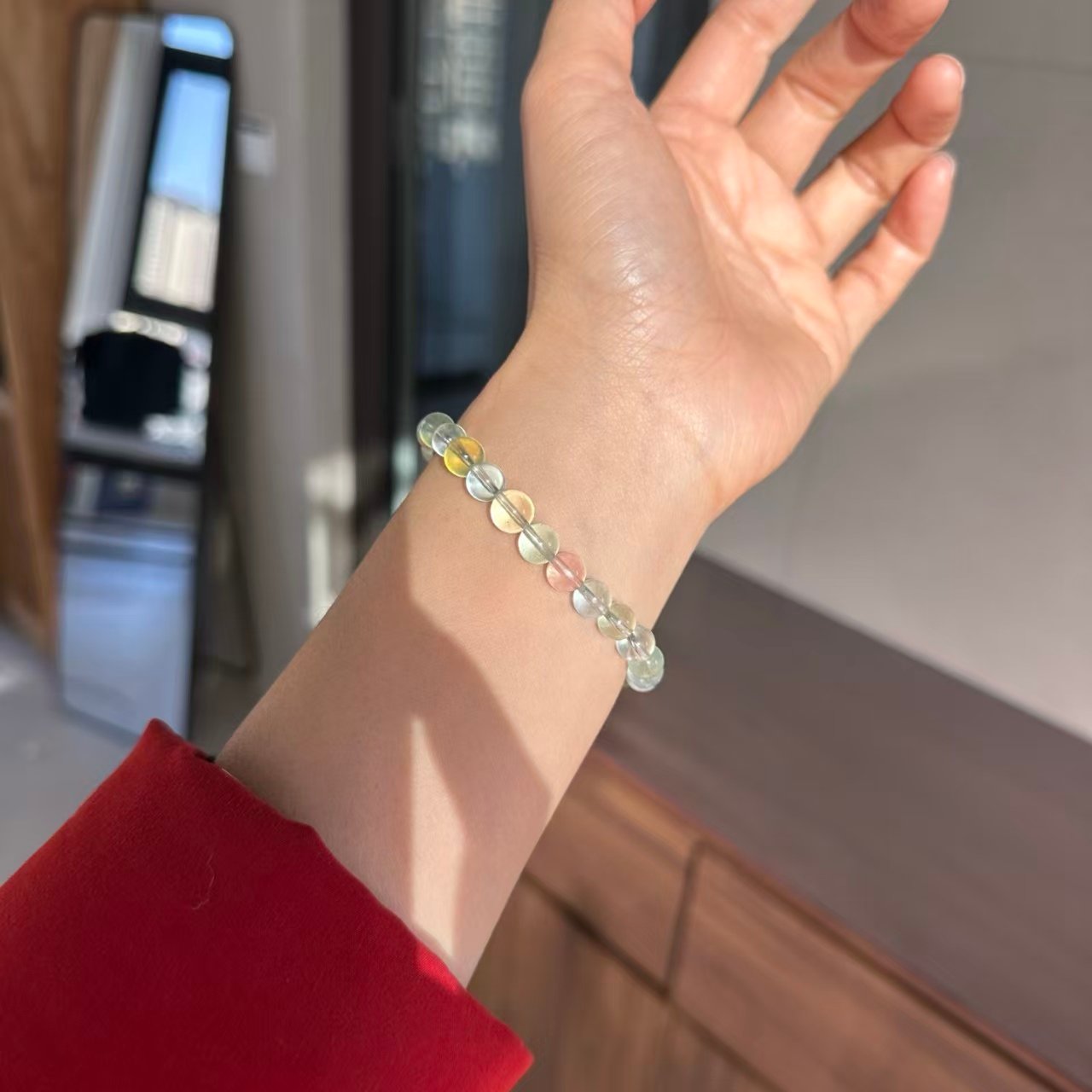 Customized jewelry, featuring high-end natural rare multi-colored ultra-fine morganite single-ring bracelet, approximately 7.6mm in width, weighing 15.1 grams.